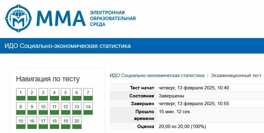 Сборник ответов к экзаменационному тесту Социально-экономическая статистика ММА.