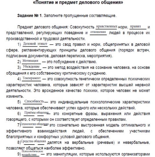 Для студентов МИ ВлГУ по предмету Социальное взаимодействие в отраслиПрактическая работа №1. Понятие и предмет делового общения.Практическая работа №1. Понятие и предмет делового общения.