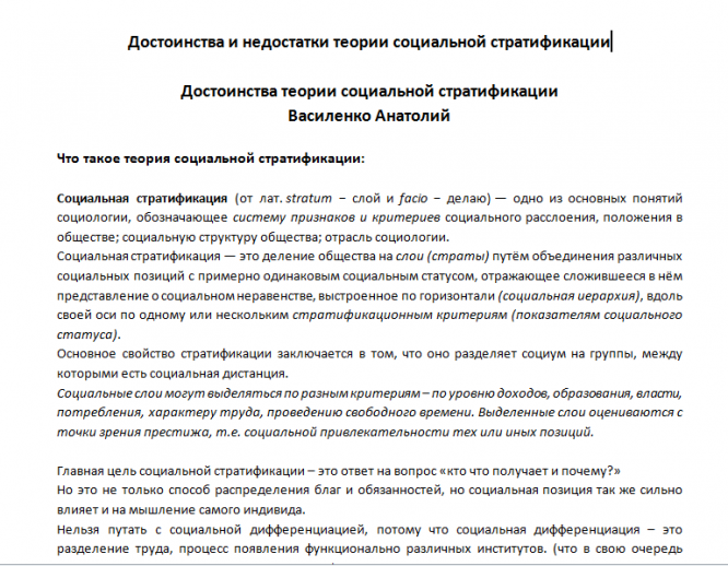 Реферат: Достоинства и недостатки теории социальной стратификации