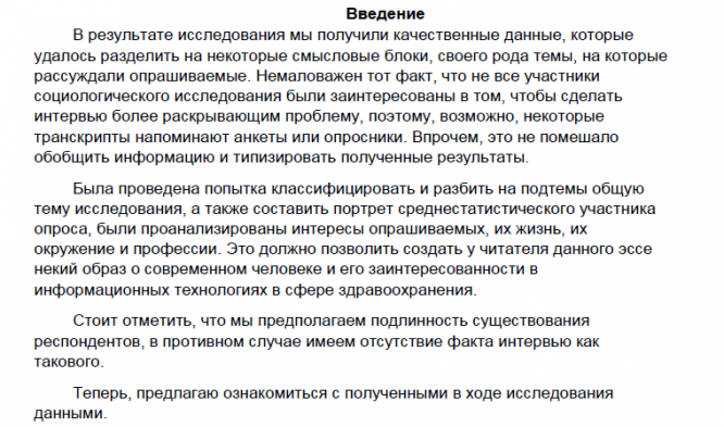 Эссе о социологическом исследовании "Исследование осведомленности современного человека в разработках в сфере информационных технологий, связанных со здоровьем"