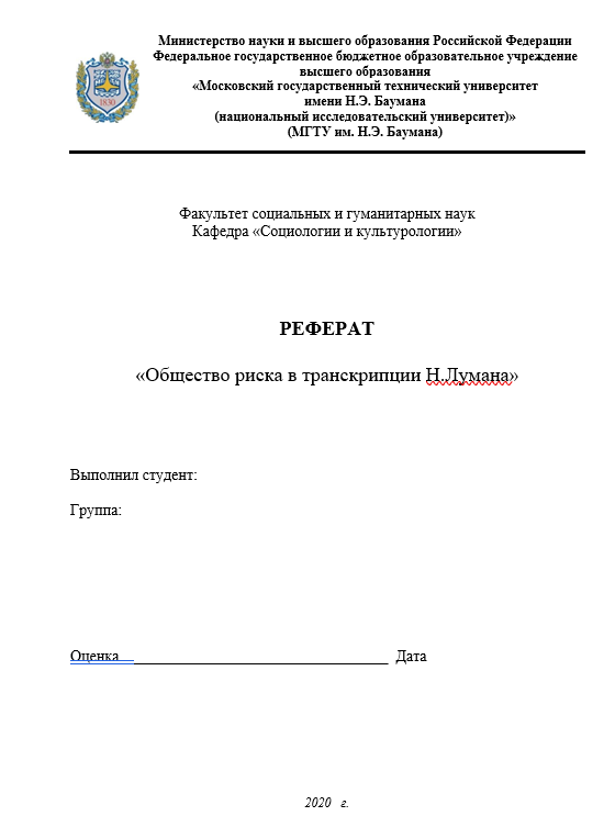 Для студентов МГТУ им. Н.Э.Баумана по предмету СоциологияОбщество риска в транскрипции Н.ЛуманаОбщество риска в транскрипции Н.Лумана