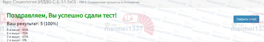 Для студентов ИДДО НИУ «МЭИ» по предмету СоциологияКурс Социология - КМ-3. Социальные процессы и отношения. ТестированиеКурс Социология - КМ-3. Социальные процессы и отношения. Тестирование