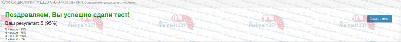 Для студентов ИДДО НИУ «МЭИ» по предмету СоциологияСоциология - КМ-3. Социальные процессы и отношения - 95%Социология - КМ-3. Социальные процессы и отношения - 95%