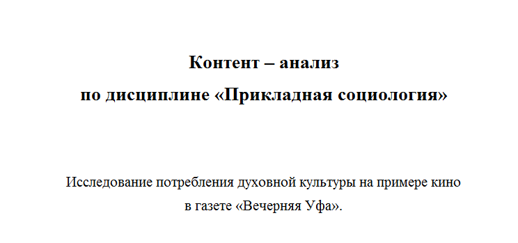 Для студентов МГУ им. Ломоносова по предмету СоциологияИсследование потребления духовной культуры на примере кино в газете «Вечерняя Уфа» Исследование потребления духовной культуры на примере кино в газете «Вечерняя Уфа»