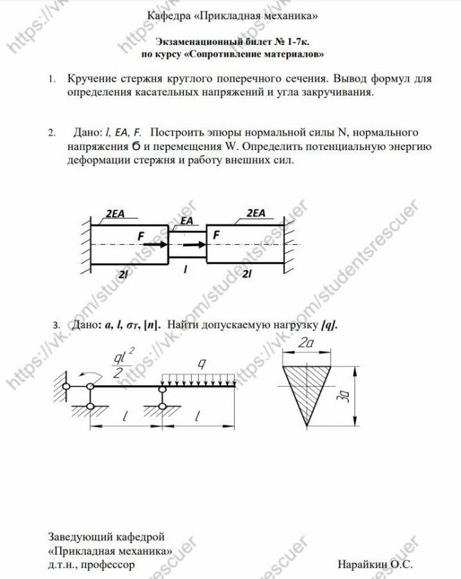 Для студентов МГТУ им. Н.Э.Баумана по предмету Сопротивление материаловБилеты к экзамену 2021-2022г - ОтветыБилеты к экзамену 2021-2022г - Ответы