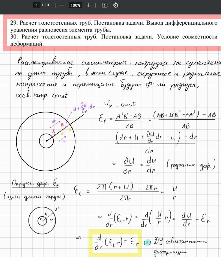 28. Расчёт толстостенных труб. Постановка задачи. Условие совместности