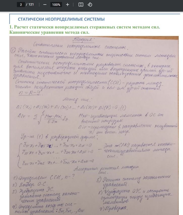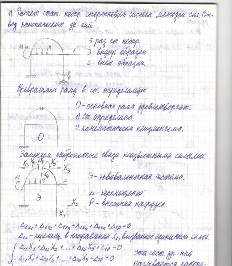 1. Метод сил расчёта статически неопределимых стержневых систем. Вывод