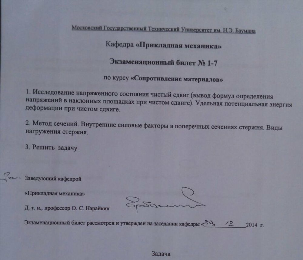 Для студентов МГТУ им. Н.Э.Баумана по предмету Сопротивление материаловЭкзаменационные билеты - ОтветыЭкзаменационные билеты - Ответы