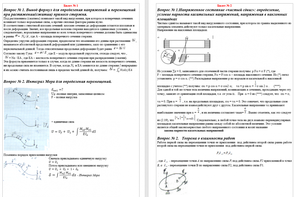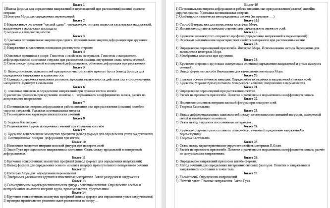 Для студентов МГТУ им. Н.Э.Баумана по предмету Сопротивление материаловКороткие ответы на теоретические вопросы (27 билетов - без задач)Короткие ответы на теоретические вопросы (27 билетов - без задач)