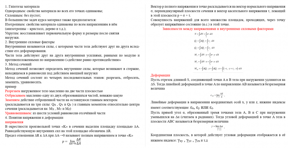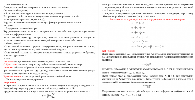 Ответы к экзамену: Ответ на все теории по курсу "Сопротивление материалов"