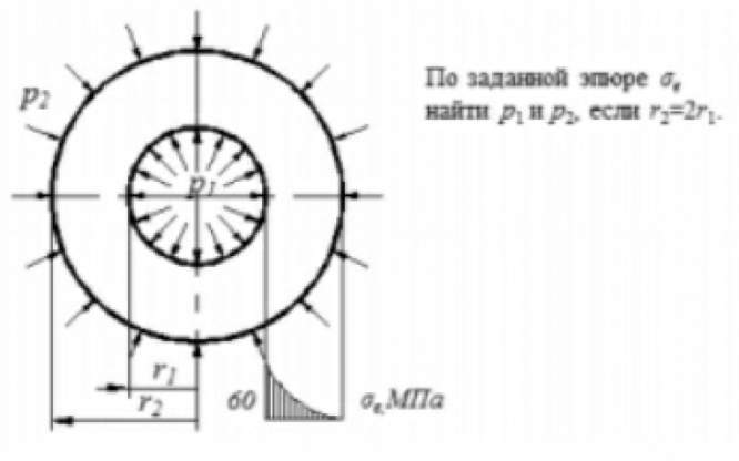 • 2. По заданной эпюре σ1 найти p1 и p2, если r2=2*r1