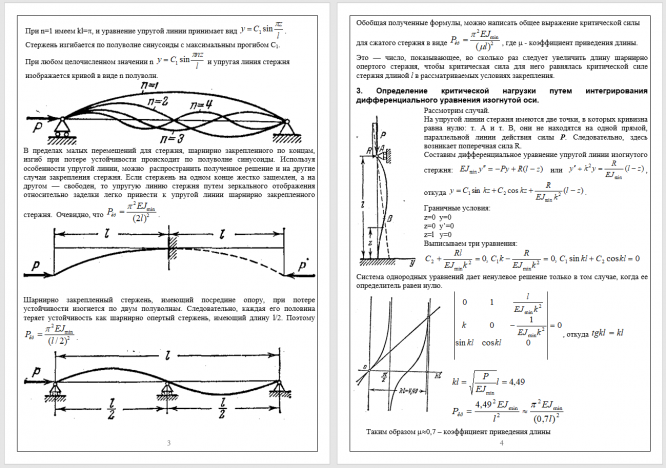 3. Определение критической нагрузки путем интегрирования дифференциального уравнения изогнутой оси.
