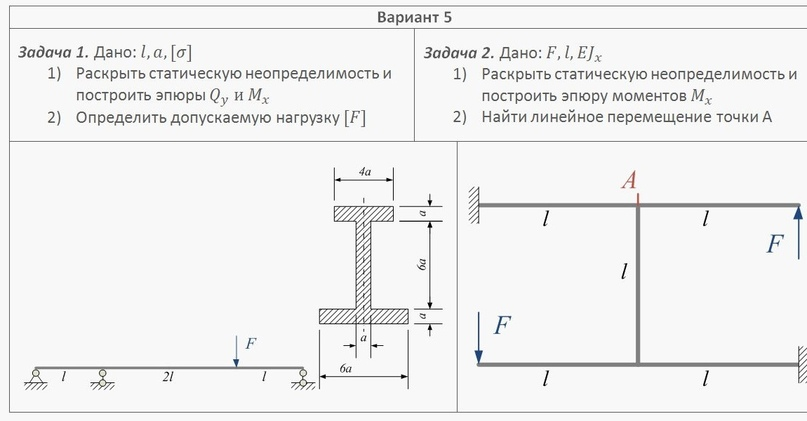 Ответы к контрольной работе 1: Статически неопределимые задачи изгиба вариант 5