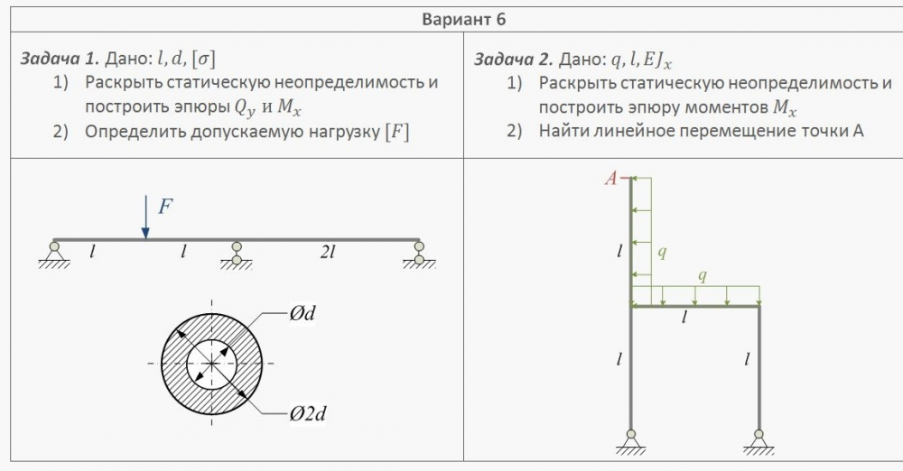 Ответы к контрольной работе 1: Статически неопределимые задачи изгиба вариант 6