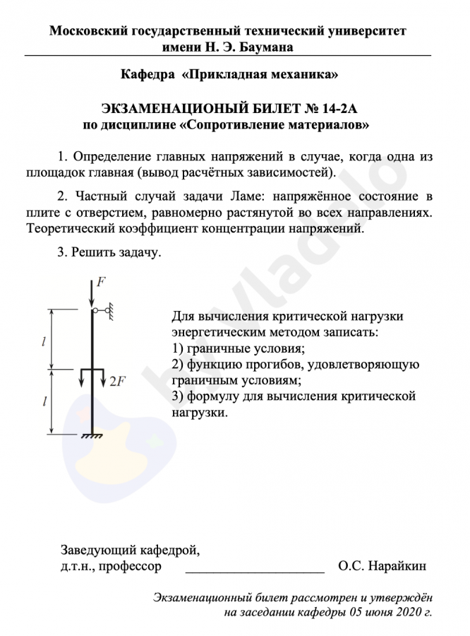 Главная » Учебные материалы » Сопротивление материалов » Ответы (шпаргалки) » МГТУ им. Н.Э.Баумана » 4 семестр » К экзамену » Разбор билетов из экзамена по сопротивлению материалов 2024