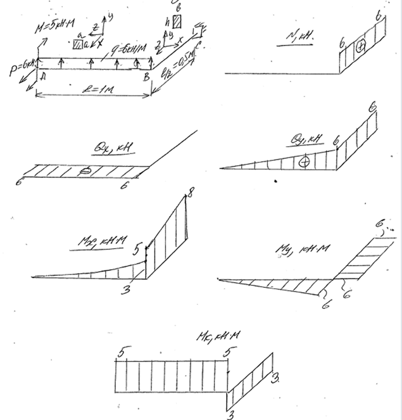 Показать/скрыть дополнительное описаниеГотовые задачи содержат четыре расчётные задачи: стержень при продольной нагрузке, ступенчатый стержень при кручении, балка с поперечными нагрузками и пространственная рама. В работе есть численные подстановки, эпюры, значения напряжений и готовые формулы для подбора сечений..