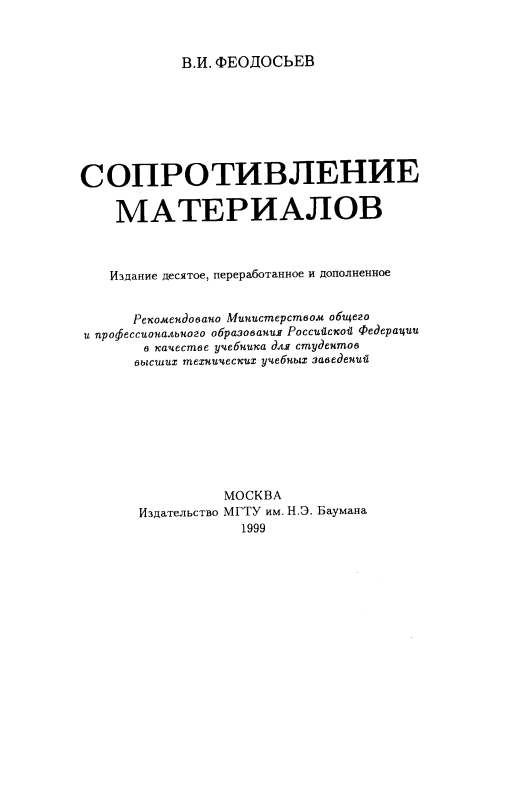 Для студентов МГТУ им. Н.Э.Баумана по предмету Сопротивление материаловУчебник - Сопротивление материалов - В. И. ФеодосьевУчебник - Сопротивление материалов - В. И. Феодосьев