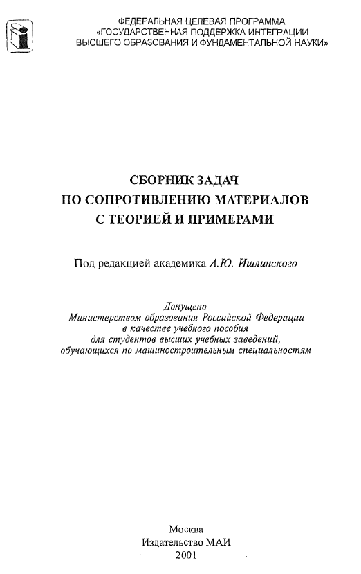 Для студентов МАИ по предмету Сопротивление материаловИшлинский А.И. - Сборник задач по сопротивлению материалов с теорией и примерамиИшлинский А.И. - Сборник задач по сопротивлению материалов с теорией и примерами 2025-05-10СтудИзба