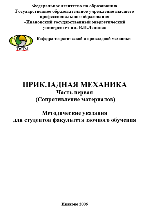 Для студентов ИГЭУ им. Ленина по предмету Сопротивление материаловН.В. Малинина, Ю.Е. Филатов - Прикладная механика. Часть первая (Сопротивление материалов) . Методические указания для студентов факультета заочного оН.В. Малинина, Ю.Е. Филатов - Прикладная механика. Часть первая (Сопротивление материалов) . Методические указания для студентов факультета заочного о