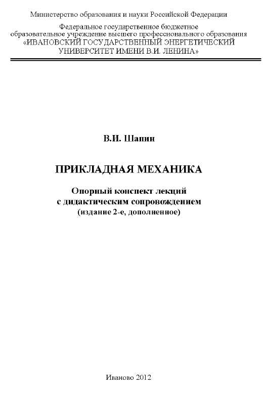 Для студентов ИГЭУ им. Ленина по предмету Сопротивление материаловВ.И. Шапин - Прикладная механика. Опорный конспект лекций с дидактическим сопровождениемВ.И. Шапин - Прикладная механика. Опорный конспект лекций с дидактическим сопровождением