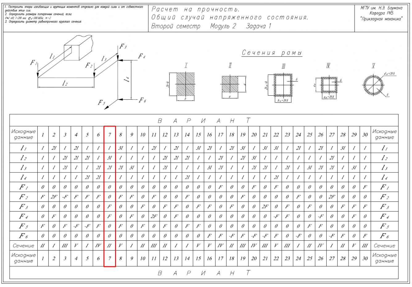 Главная » Учебные материалы » Сопротивление материалов » Домашние задания » МГТУ им. Н.Э.Баумана » 4 семестр » Номер 6B » Вариант 7 » Расчет на прочность. Общий случай напряженного состояния