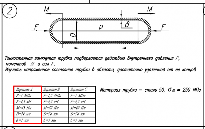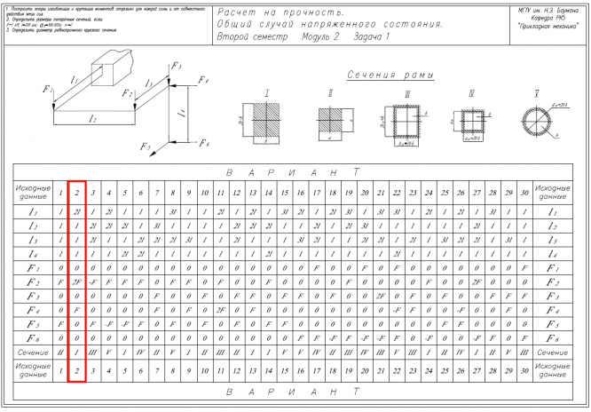 Главная » Учебные материалы » Сопротивление материалов » Домашние задания » МГТУ им. Н.Э.Баумана » 4 семестр » Номер 5 » Вариант 2 » Расчет на прочность. Общий случай напряженного состояния