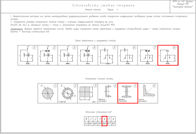 ДЗ 6: Устойчивость сжатых стержней вариант 854