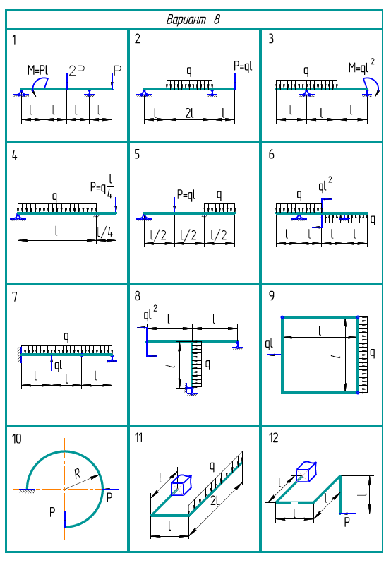 ДЗ 1: Построение эпюр внутренних силовых факторов вариант 8