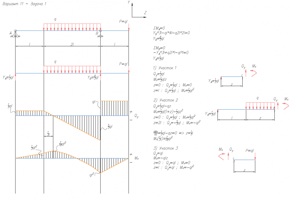 ДЗ 1: Построение эпюр внутренних силовых факторов вариант 11