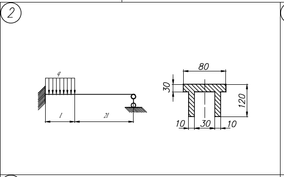 1)Произвести расчет балки при упругих деформациях: а)раскрыть статическую неопределимость и построить эпюры Q/y и M/x; б)определить допускаемую нагрузку; в)изобразить примерный вид упругой линии балки. 2)Произвести расчет балки при упруго-пластических деформациях: а)вычислить предельный момент для заданного сечения; б)найти предельную нагрузку для балки и коэффициент запаса; в)определить коэффициент запаса как отношение предельной нагрузки к допустимой нагрузке. Дано: материал балки идеально упруго-пластичный; σ/Т=320МПа; [n]=1,5; l=1м 1)Раскрыть статическую неопределимость и построить эпюру M/изг; 2)Найти линейное перемещение в направлении А-А или угловое перемещение в сечении В.