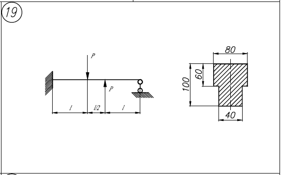 1)Произвести расчет балки при упругих деформациях: а)раскрыть статическую неопределимость и построить эпюры Q/y и M/x; б)определить допускаемую нагрузку; в)изобразить примерный вид упругой линии балки. 2)Произвести расчет балки при упруго-пластических деформациях: а)вычислить предельный момент для заданного сечения; б)найти предельную нагрузку для балки и коэффициент запаса; в)определить коэффициент запаса как отношение предельной нагрузки к допустимой нагрузке. Дано: материал балки идеально упруго-пластичный; σ/Т=320МПа; [n]=1,5; l=1м 1)Раскрыть статическую неопределимость и построить эпюру M/изг; 2)Найти линейное перемещение в направлении А-А или угловое перемещение в сечении В.