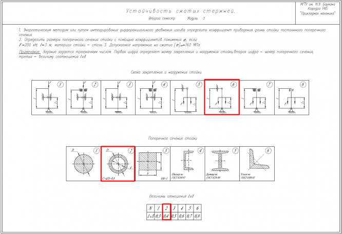 ДЗ 6: Устойчивость сжатых стержней вариант 622