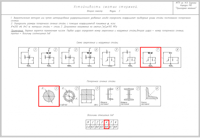 ДЗ 6: Устойчивость сжатых стержней вариант 714