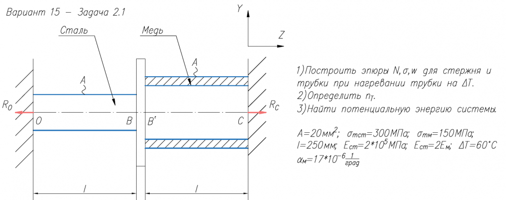ДЗ 2, 3: Растяжение сжатие, Кручение вариант 15