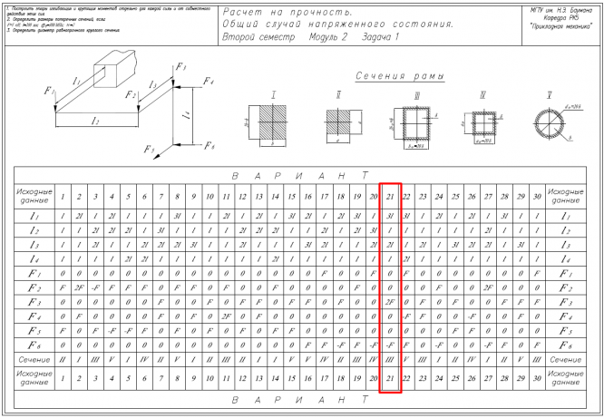 ДЗ 5: Расчет на прочность. Общий случай напряженного состояния вариант 21