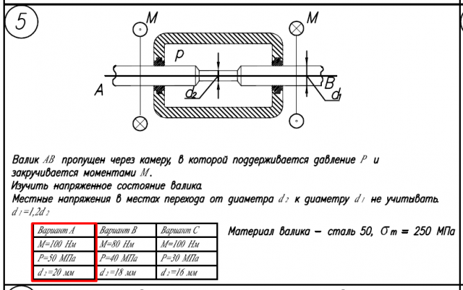 Главная » Учебные материалы » Сопротивление материалов » Домашние задания » МГТУ им. Н.Э.Баумана » 4 семестр » Номер 5 » Вариант 21 » Расчет на прочность. Общий случай напряженного состояния