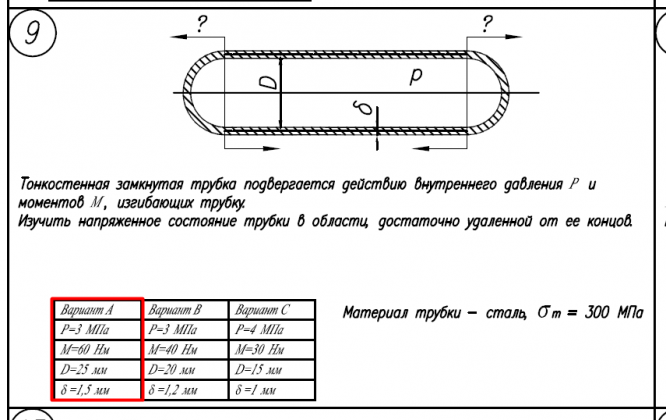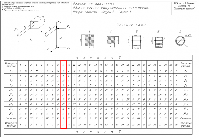 Главная » Учебные материалы » Сопротивление материалов » Домашние задания » МГТУ им. Н.Э.Баумана » 4 семестр » Номер 5 » Вариант 9 » Расчет на прочность. Общий случай напряженного состояния