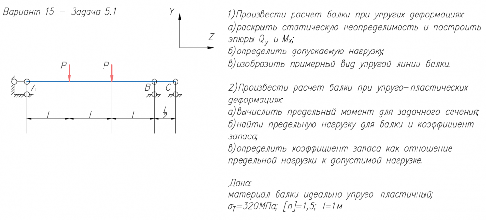 ДЗ 5: Статически неопределимые задачи изгиба вариант 15