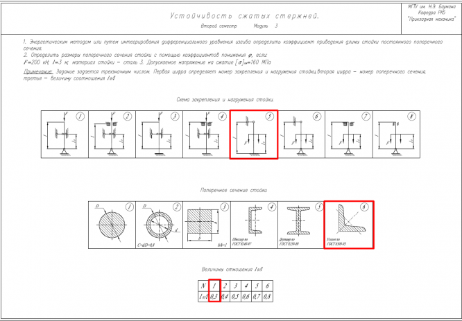 ДЗ 6: Устойчивость сжатых стержней вариант 561