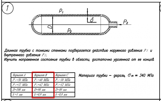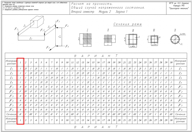 Главная » Учебные материалы » Сопротивление материалов » Домашние задания » МГТУ им. Н.Э.Баумана » 4 семестр » Номер 5 » Вариант 1 » Расчет на прочность. Общий случай напряженного состояния