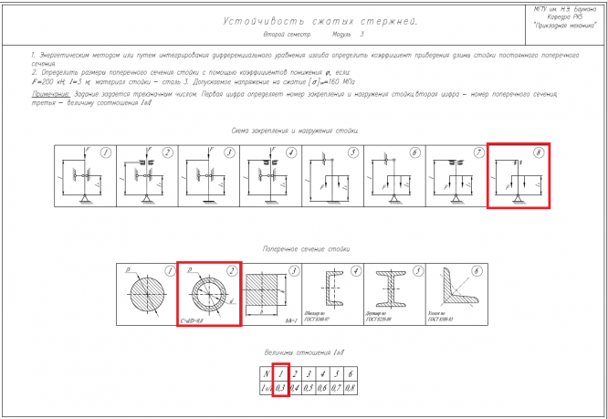 ДЗ 6: Устойчивость сжатых стержней вариант 821