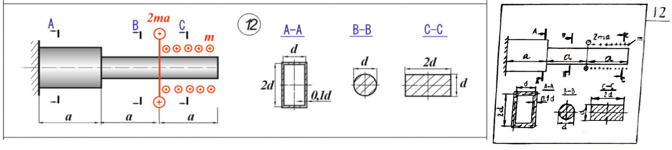 Главная » Учебные материалы » Сопротивление материалов » Домашние задания » МАИ » 1 семестр » Номер 2.1 » Вариант 12 » Расчет статически определимого стержня на кручение