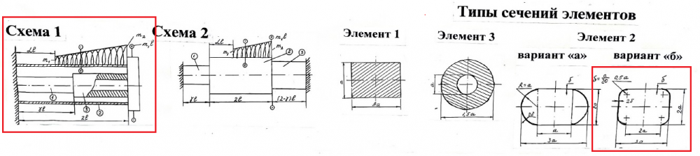 • Система изображается с конкретными числовыми значениями параметров. Материал элементов системы считать одинаковым