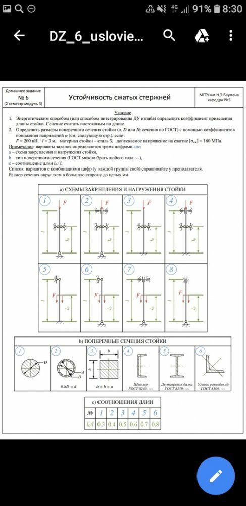 ДЗ 6: Устойчивость сжатых стержней вариант 325
