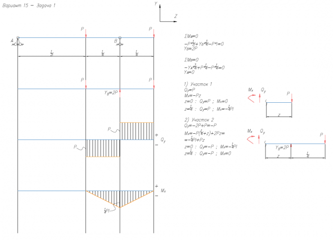 ДЗ 1: Построение эпюр внутренних силовых факторов вариант 15