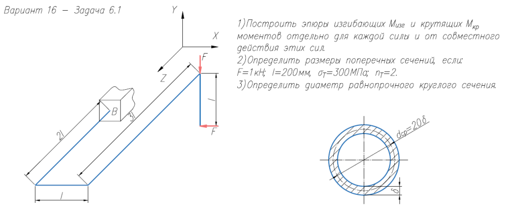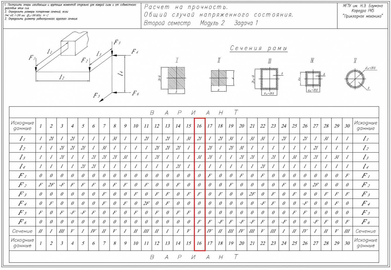 ДЗ 6C: Расчет на прочность. Общий случай напряженного состояния вариант 16