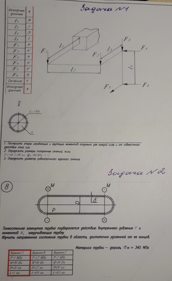 Главная » Учебные материалы » Сопротивление материалов » Домашние задания » МГТУ им. Н.Э.Баумана » 4 семестр » Номер 5 » Вариант 8 » Расчет на прочность. Общий случай напряженного состояния