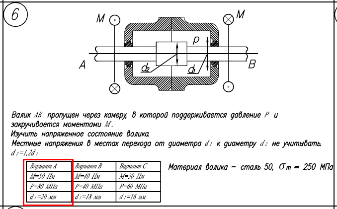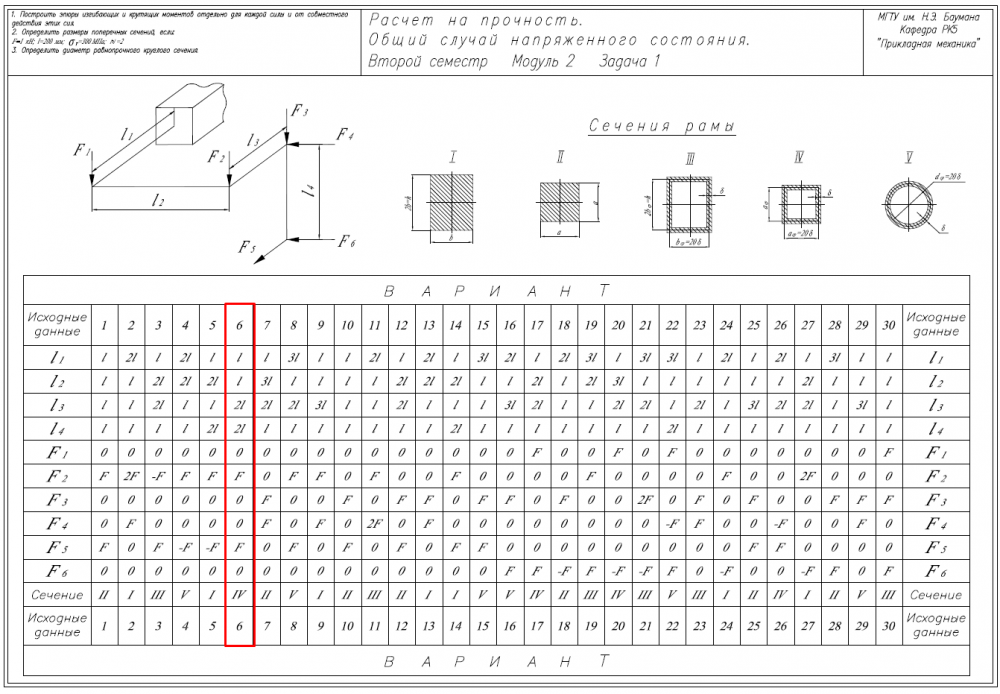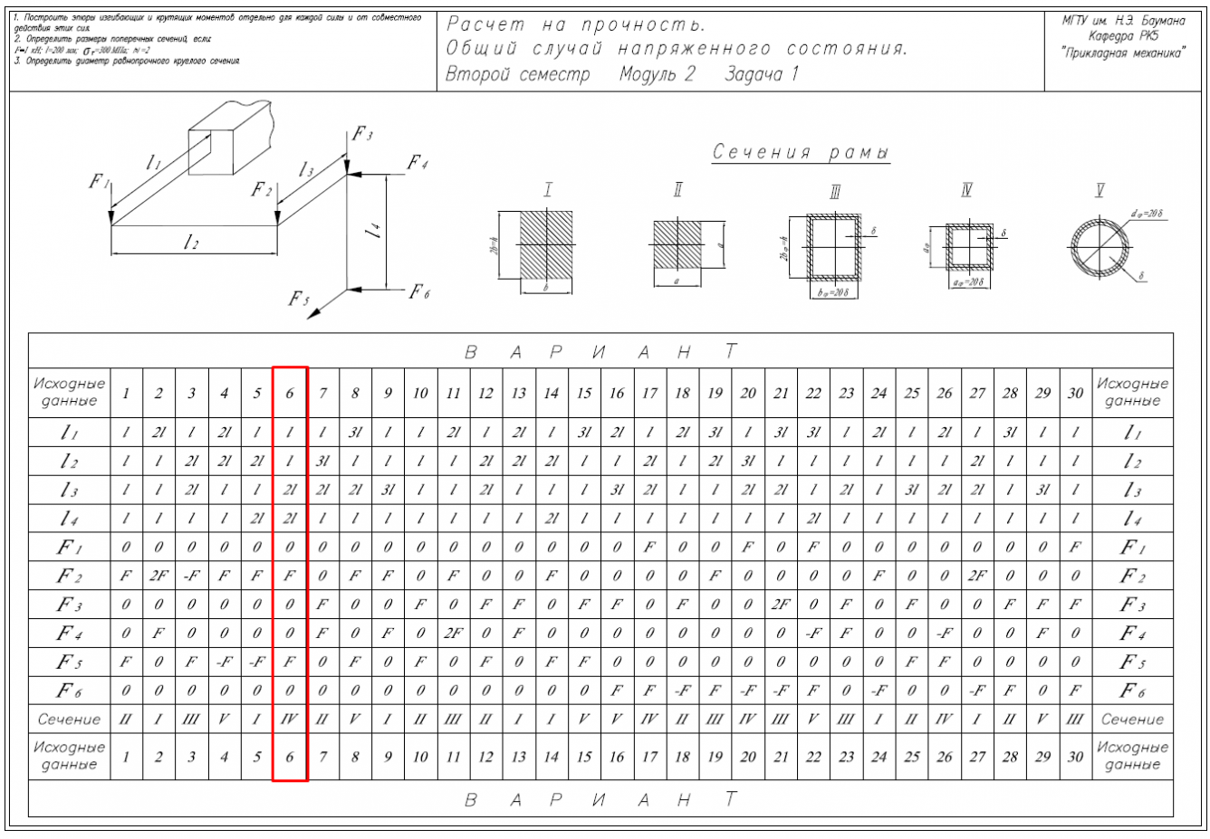 Главная » Учебные материалы » Сопротивление материалов » Домашние задания » МГТУ им. Н.Э.Баумана » 4 семестр » Номер 6 » Вариант 6 » Расчет на прочность. Общий случай напряженного состояния