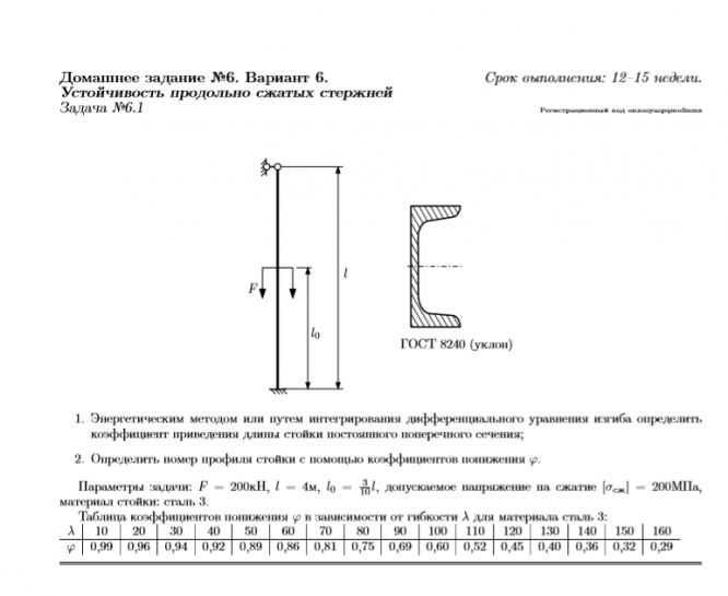 ДЗ 6: Устойчивость сжатых стержней вариант 6