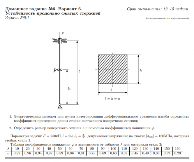 ДЗ 6: Устойчивость сжатых стержней вариант 6